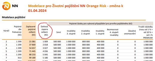 Pokud pojistné hradí pouze klient nebo není pojistné za daňově uznatelné připojištění dlouhodobé péče (LTCD) plně hrazeno zaměstnavatelem, pak je daňová úspora vyčíslená.
