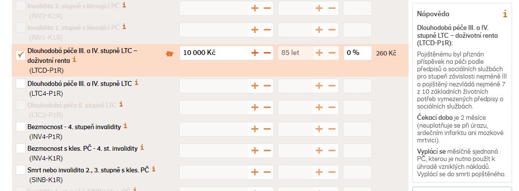 V kalkulačce Stela 2.0 najdete pojištění dlouhodobé péče jako součást Životního pojištění NN Orange Risk.